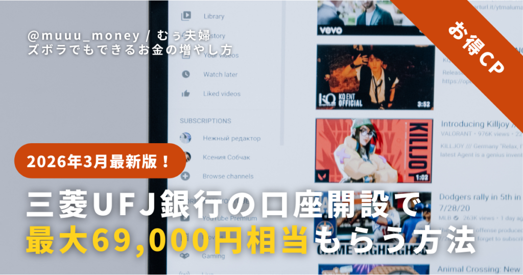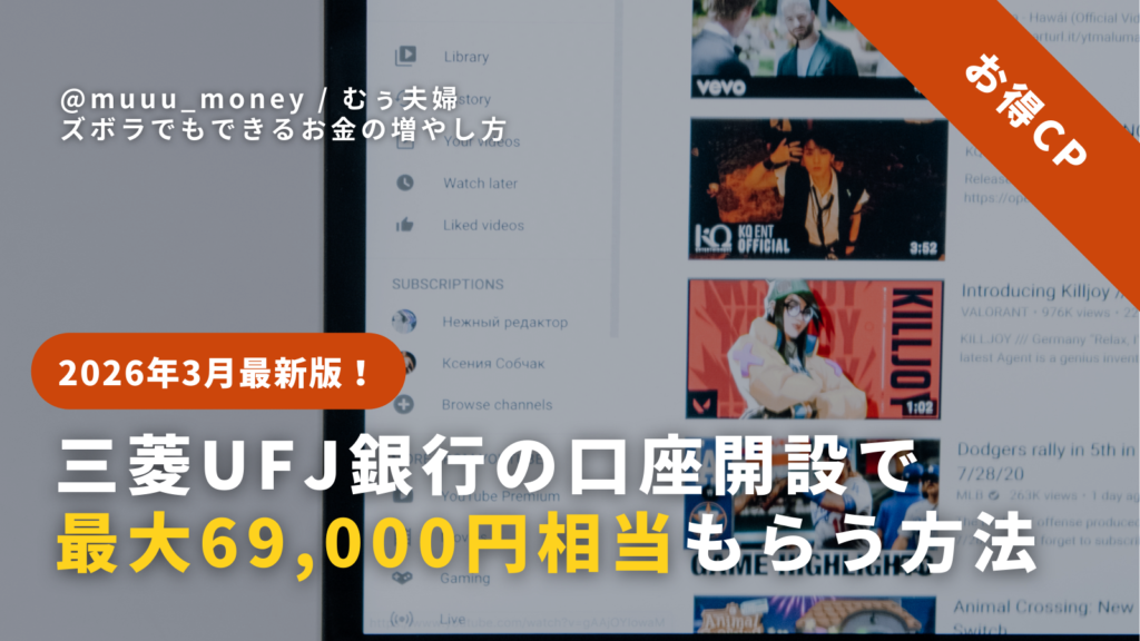 【2026年最新・完全版】三菱UFJ銀行の口座開設で最大69,000円相当もらう方法