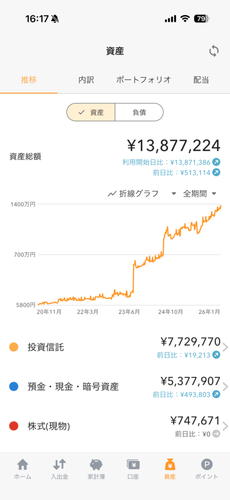 マネーフォワード(マネフォ)の資産状況